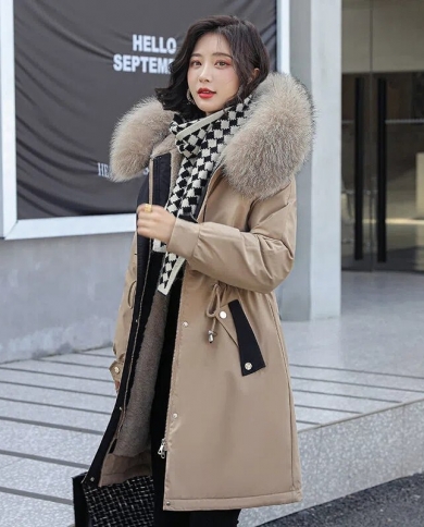 2022 New Winter Jacket Women Parka Long Coat Wool Liner