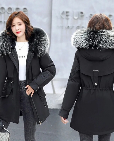 2022 New Winter Jacket Women Thick Warm Parkas Long Fur
