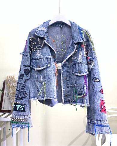 Denim Jackets New Women Jacket High Street Graffiti Personality Short