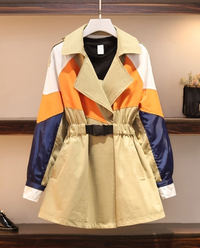 2022 Autumn New Women Trench Coat Long Sleeve Patchwork Windbreaker