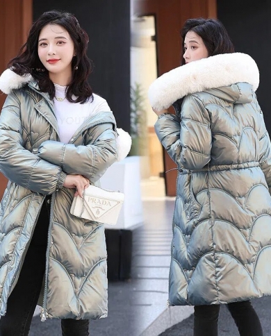2022 New Womens Parkas Winter Jacket Glossy Long Coat Fur