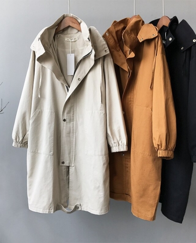 Autumn New Womens Casual Long Trench Coat Hooded Loose