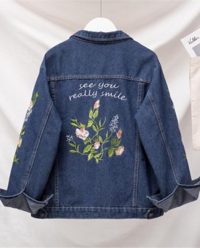 2022 New Autumn Women Denim Jacket Long Sleeve Flowers Female