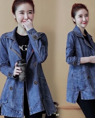 New Autumn Womens Denim Jacket Vintage Casual Double Breasted