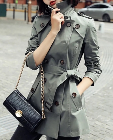 New Autumn Womens Trench Coat Casual Double Breasted Slim
