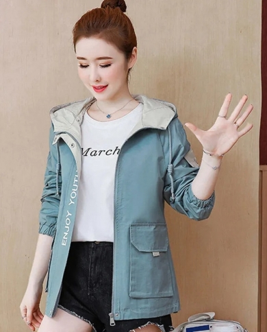 2022 New Spring Autumn Women Jacket Fashion Hooded Windbreaker Female