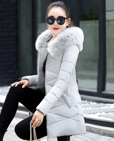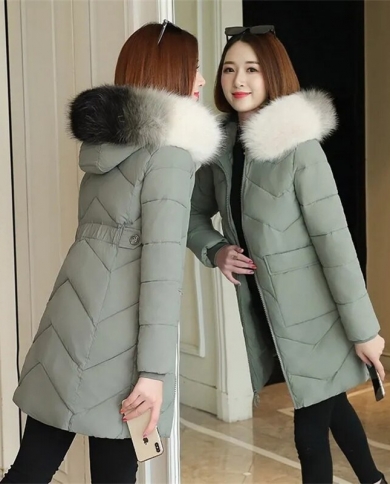 Women Parkas New Winter Jacket Fur Collar Hooded Long