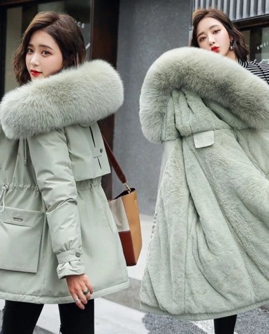 2022 New Warm Fur Lining Long Parka Winter Jacket Womens