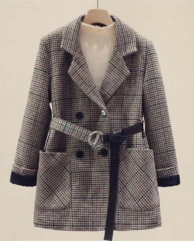 New Autumn Winter Womens Jacket Plaid Wool Blends Coat