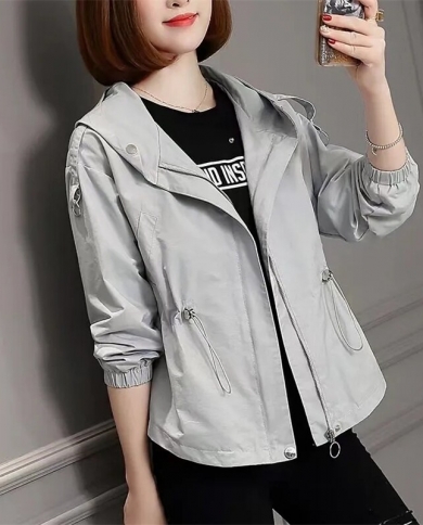 Womens Jacket 2022 New Autumn Fasion Long Sleeves Hooded Windbreaker