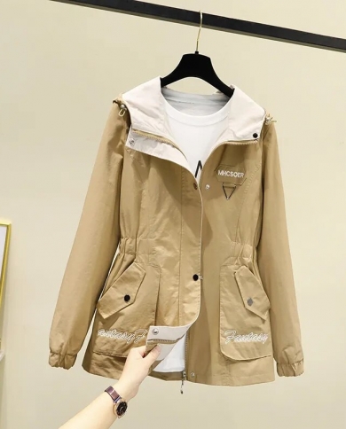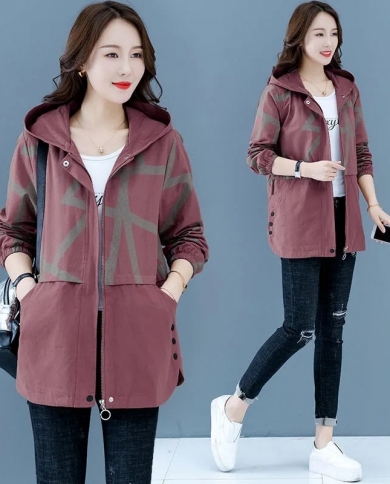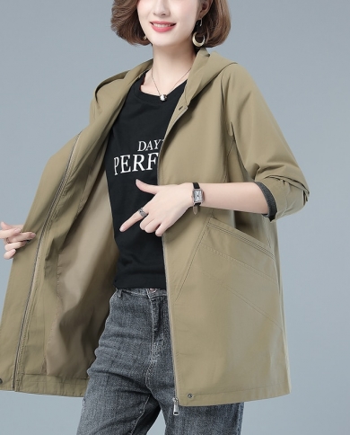 Womens Jacket 2022 Spring Autumn New Hooded Casual Windbreaker Long