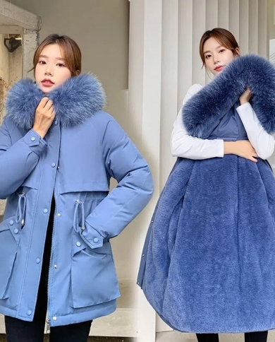 2022 New Winter Jacket Women Parka Fashion Long Wool Liner