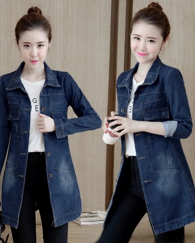 2022 New Autumn Denim Jackets Women Long Sleeves Overcoat Jeans