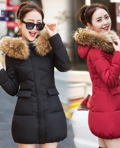 New Winter Parkas Women Jacket Long Hooded Fur Collar