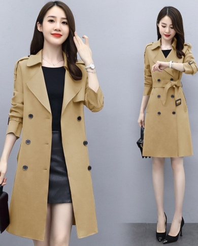 New Autumn Elegant Women Trench Coat Double Breasted Long