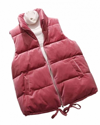 Fashion Gold Velvet Fabric Cotton Vest Jacket Women Autumn Winter