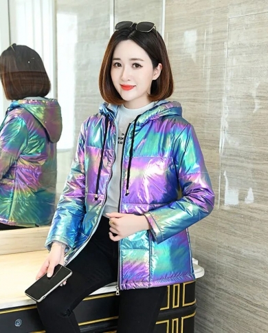 New Winter Coat Women Jacket Parkas Hooded Glossy Winter