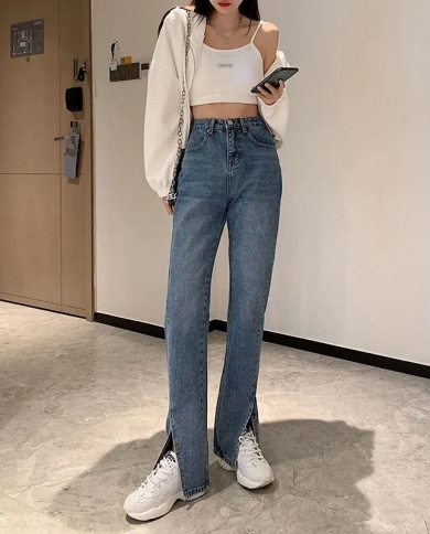 2022 New Autumn Streetwear High Waist Womens Jeans Fashion Wide