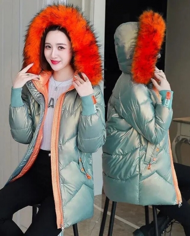 2022 New Winter Jacket Women Parkas Long Glossy Down Cotton
