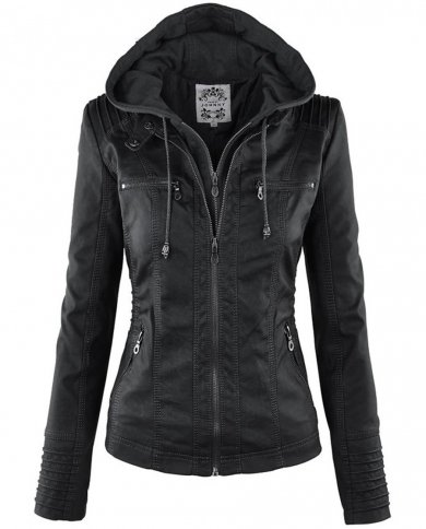 Winter Women Black Leather Jacket Casual Ladies Hooded Basic