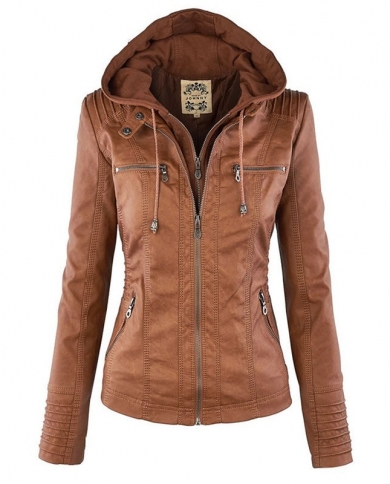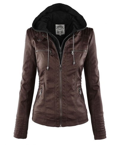 Fashion Winter Faux Leather Jacket Womens Basic Jackets Hooded