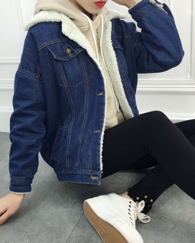 Autumn Winter Female Denim Basic Jackets Lambswool Women Warm