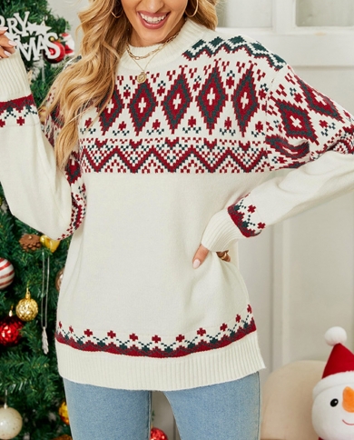 Women Casual Sweater Pullovers Autumn Winter Christmas Contrast Colorblock Knitted