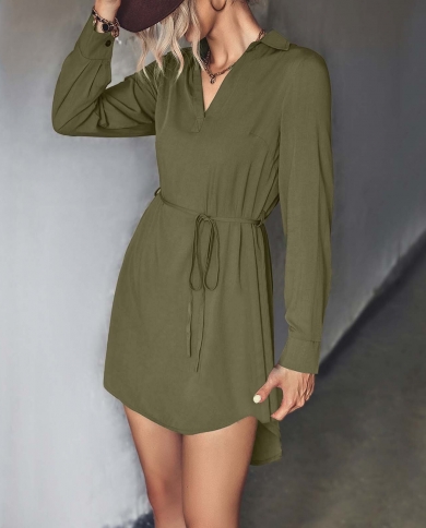 Elegant V Neck Turn Down Collar Dress Fashion Long Sleeve