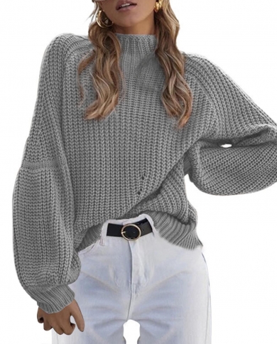 Women Casua Loose Solid Color Knitwear Casual Smockneck Sweater Pullover