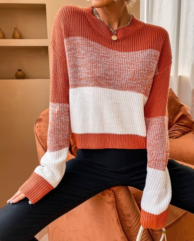 Autumn Winter Women Sweater Pullovers Round Neck Stripe Long Sleeve