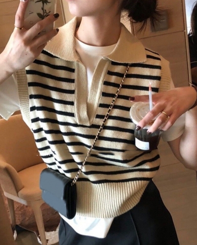 Womens Autumn Winter Knitted Vest Lapel Neck V Neck Sleeveless