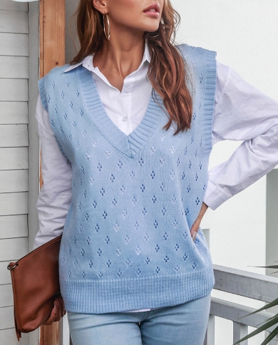 2022 New Womens Oversized V Neck Knit Sweater Vest Tunic