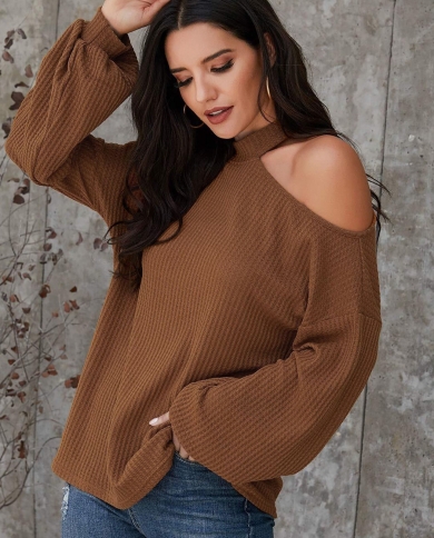 Womens Crew Neck Cold Shoulder Sweaters Pullovers Long Sleeve Knit