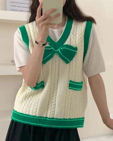 Womens Sweater Vest Casual Sleeveless Pullovers Ladies Cute Bowknot Knitwear