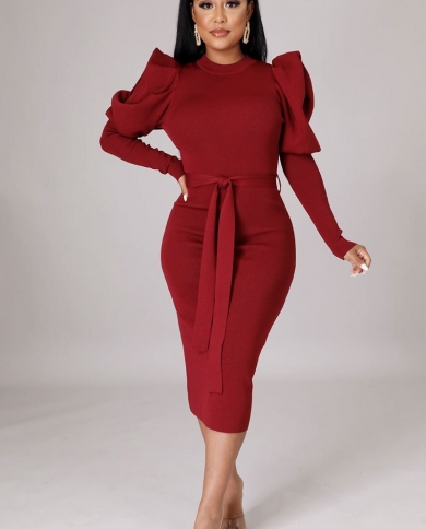 Elegant Party Women Dress Slim O Neck Long Sleeve Mid