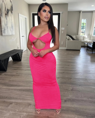2022 Womens Solid Color Dress Spaghetti Straps Round Cutout