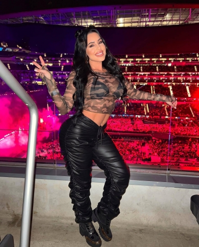 Drawstring Leather Women Pants Black High Waist Long Streetwear