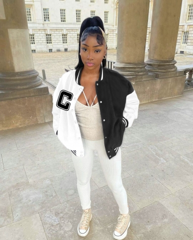 Women Baseball Uniform Coat 2022 Autumn Winter Letter Color Contrast