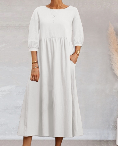 Dress For Women 2022 Fashion Casual Solid Cotton And Linen