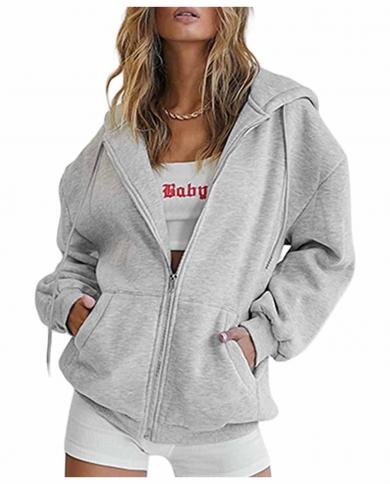 Hoodies Women Harajuku Streetwear Oversized Hooded Zip Up Sweatshirt