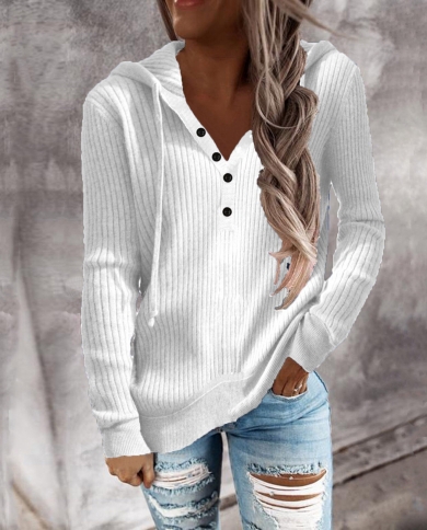 Womens Long Sleeve Hooded Sweater Solid Casual Hooded Knit Sweater