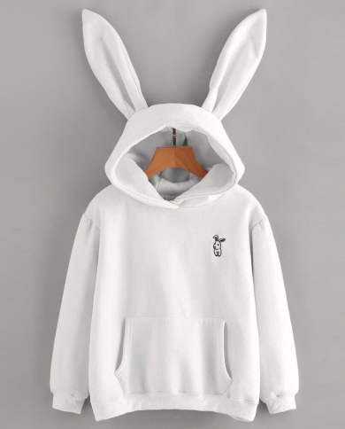 Hoodies Women Kawaii Rabbit Ears Fashion Hoody Casual Solid Color