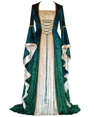 Gothic Medieval Long Dress Women Magic Witch Maxi Dress Renaissance
