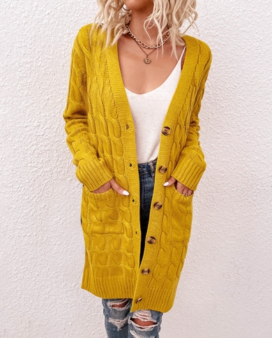 Women Autumn Winter Long Style Sweater Cardigan Casual Solid Color