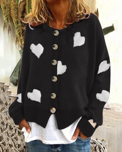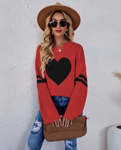 Women Loose Round Neck Pullover Heart Long Sleeve Pullovers Knit