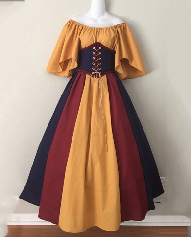 Vintage Carnival Party Long Dress Women Palace Medieval Costume Halloween