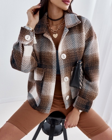Winter Jacket Women Coat Loose Plaid Thick Coat Fashion Cropped