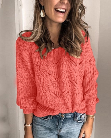 Autumn Women Hollow Loose Sweater Solid Color Knitwear New Fashion