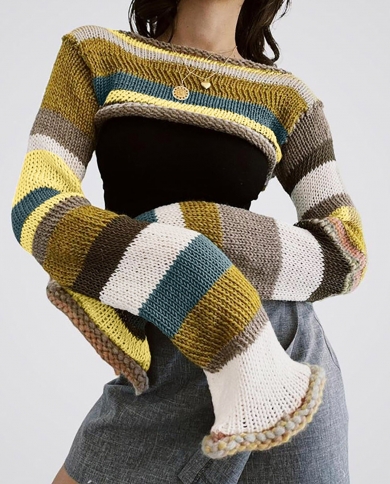 Casual Sweater Cropped Top Fashion Color Matching Knit Super