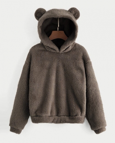 Fluffy Hoodies Women Kawaii Sweatshirt Cute Bear Ear Cap Hooded